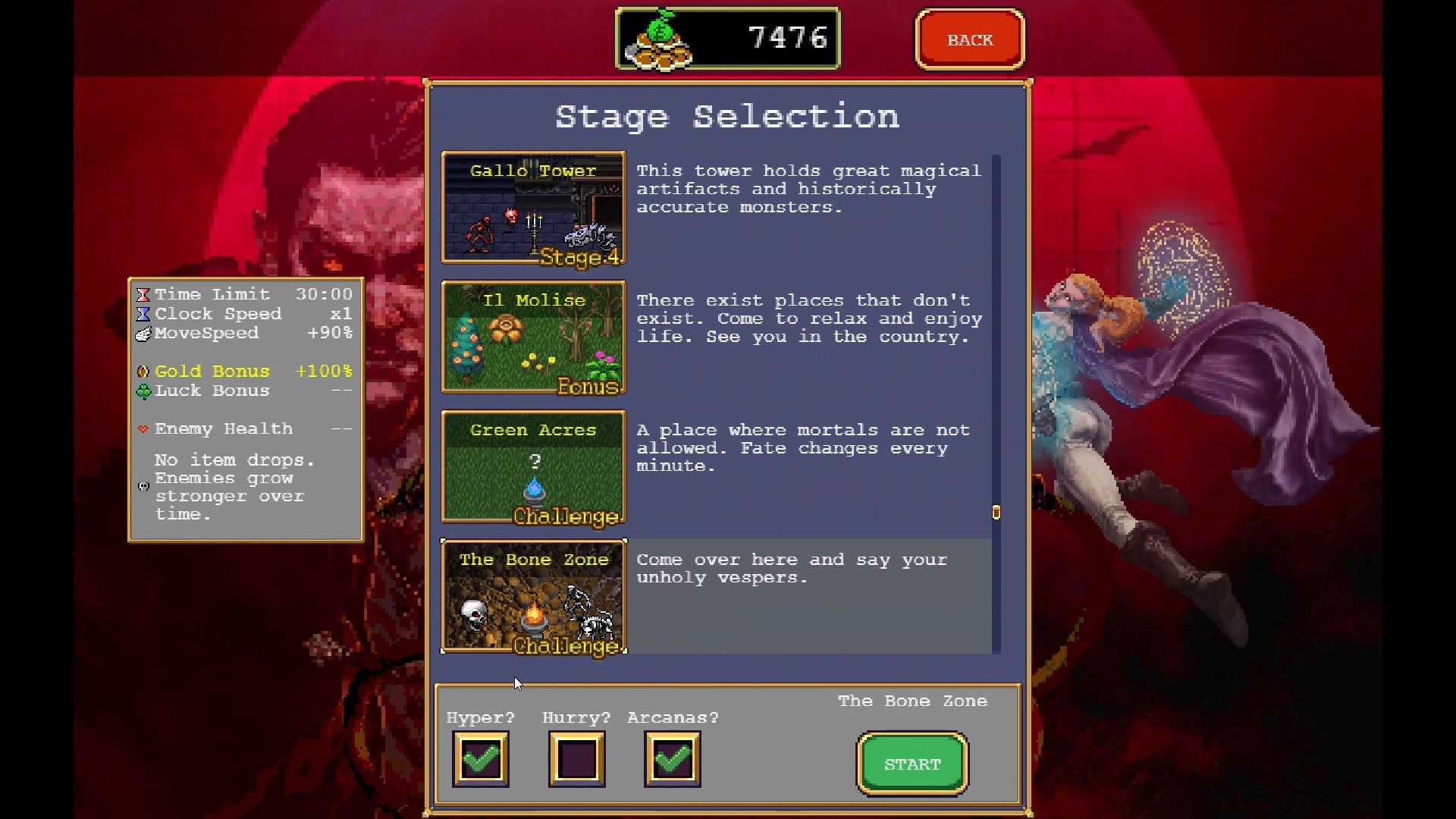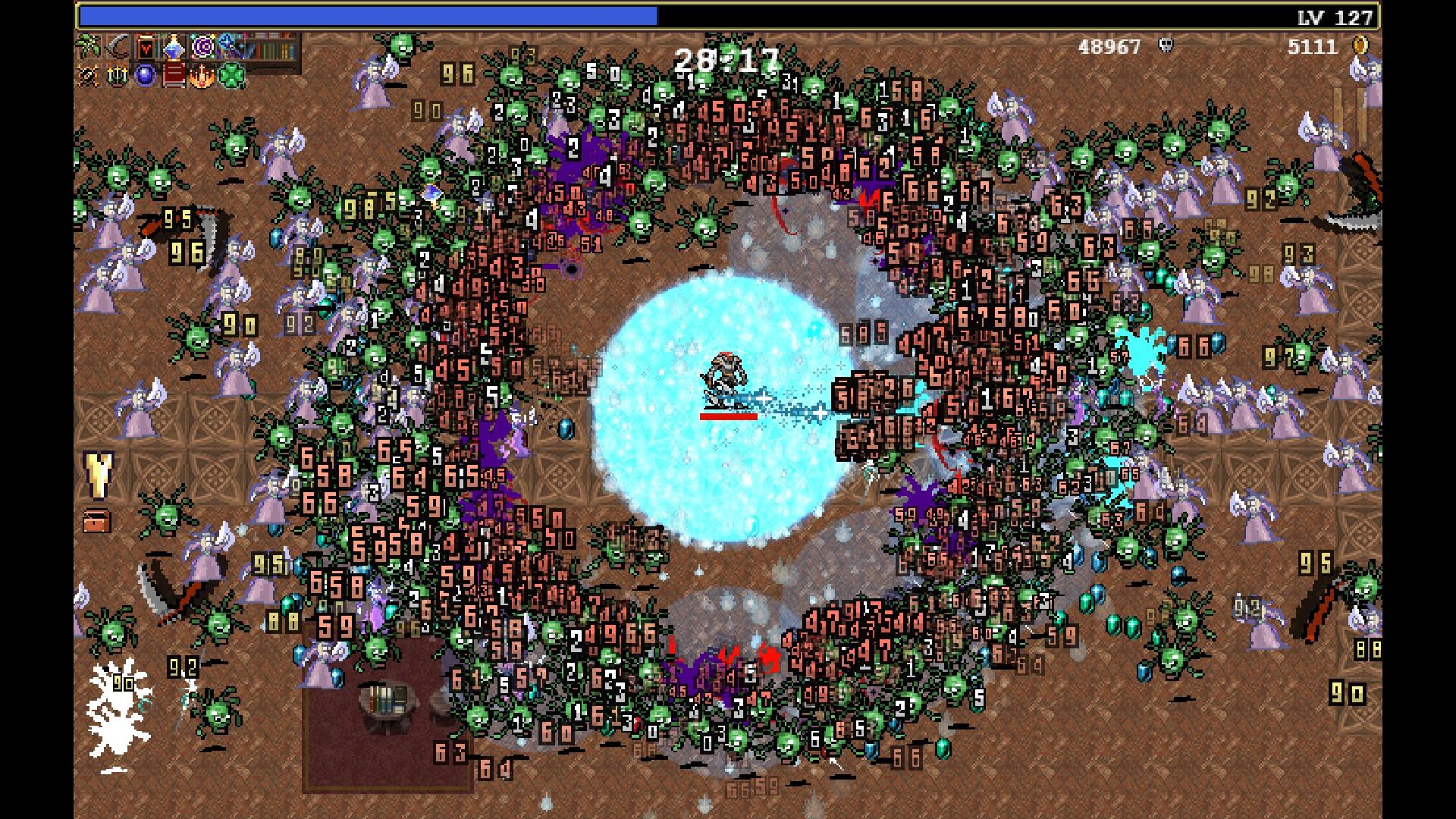 Игрок управляет одним из нескольких персонажей, которые отличаются начальным оружием, атакующим автоматически. Основная задача заключается в выживании и уничтожении волн врагов – летучих мышей, скелетов, мумий и других монстров, окружающих его. При их устранении часто из них выпадают самоцветы, которые увеличивают уровень персонажа.