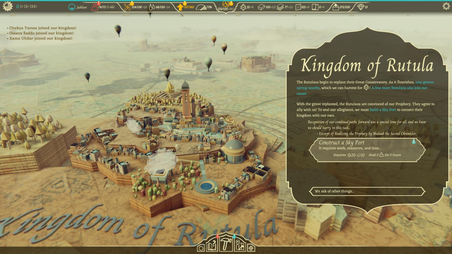Airborne Kingdom – управленческая стратегия в реальном времени с изометрической камерой в сеттинге стимпанка. В игре вы отправитесь в фантастическое путешествие – пролетите по пустыне и сможете построить свое королевство. Игра уникальным образом сочетает в себе городской менеджмент и элементы исследования. Вы будете строить дома, собирать еду, удовлетворять потребности жителей и развивать свое поселение.